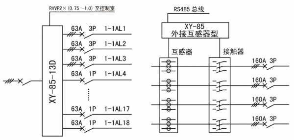 多用戶組合式配電箱內(nèi)置多用戶組臺式電能表、總進線開關(guān)、分戶開關(guān)、零線和地線端子排等,分懸掛式和嵌墻式兩種,其體積因多用戶電能表的戶數(shù)和開關(guān)種類而變。